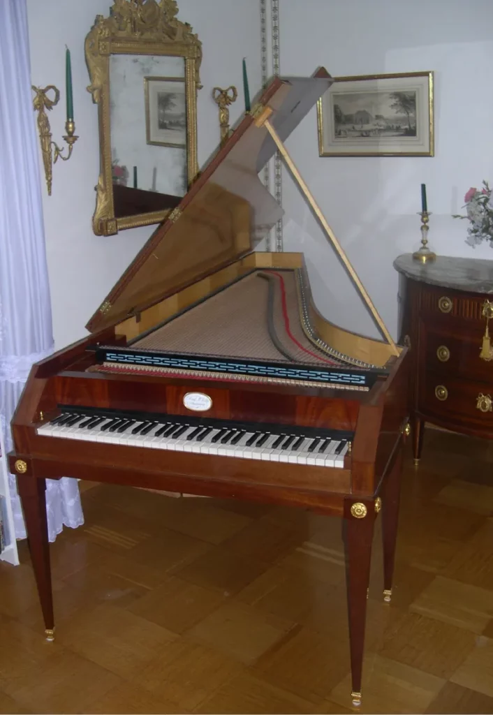 C’est en 1992 que Paul McNulty construit à Amsterdam cet instrument d’après un pianoforte d’environ 1795 créé par Anton Walter, à Vienne. Ce pianoforte, héritier de la facture de clavecin, avec ses cordes fines, relativement peu tendues, est entièrement en bois (les renforcements et cadres métalliques apparaîtront plus tard, pour répondre aux exigences de salles de concerts de plus en plus grandes). Les marteaux sont recouverts de cuir, et il a une étendue de cinq octaves (Fa 1 à Sol 3). Deux genouillères assurent les divers registres, de droite à gauche :